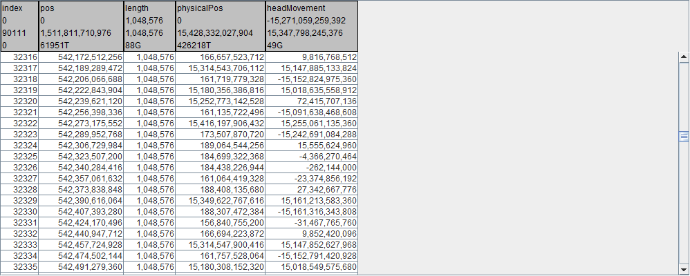llfie is an iot utility program that generates an ilz file containing the mapping information for a data file stored on a Lustre filesystem. This can be used to visualize how the file is mapped into each OST. Notice in the following table that as the file's allocation position increases, the physical position on the OST oscillates between deep into the OST(~15TB) and back out to the start of the OST(~170GB).
